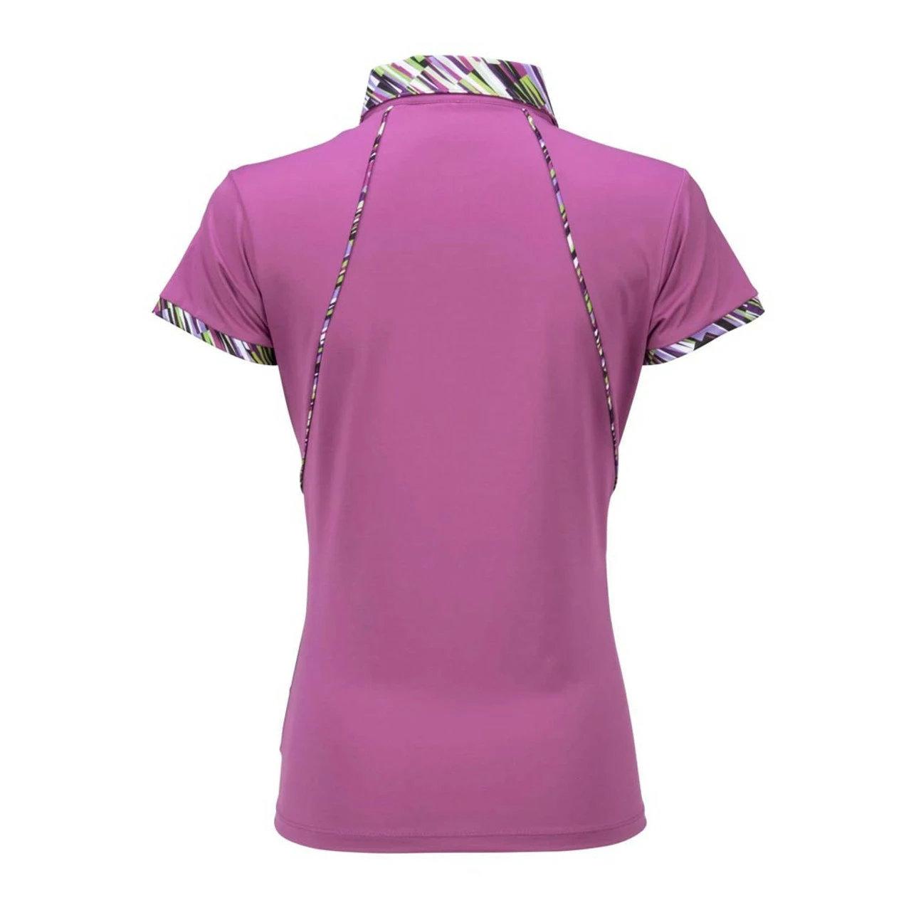 The Women’s Samba Short Sleeve Polo is constructed from a beautifully printed jersey that is soft on the skin, yet cool to the touch. This short-sleeve polo is made using a 90% polyester / 10% spandex blend for the most comfortable, versatile piece of sportswear. The self collar with printed zip placket, sleeve cuffs, and collar with piping details and metallic jewel zipper pull present an attractive, sleek look for the female golfer. Using Delux Driâ„¢ moisture wicking technology, the lightweight jersey fabric will keep you cool and dry from the first tee to the final green. With the signature Lopez flame icon at the right hip, this polo boldly highlights the golfer as she conquers the eighteen holes.
