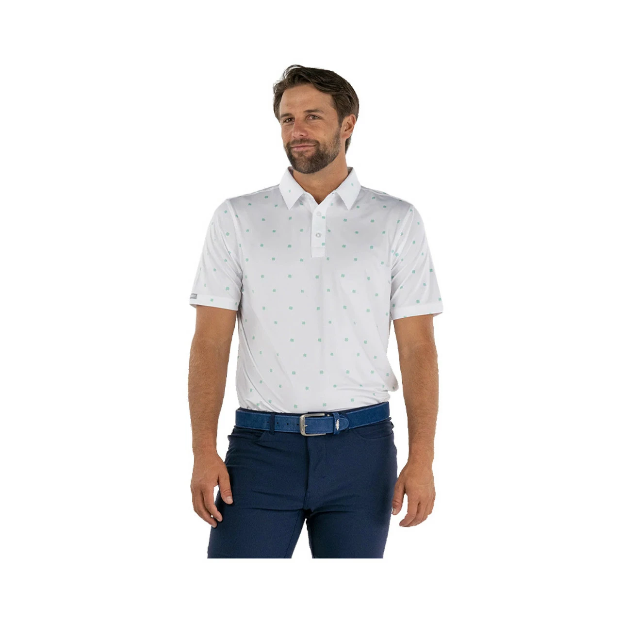 Its St Patrick’s Day all year long when you’re wearing the Lucky Day polo. This subtle green and white pattern keeps you looking classy well beyond the 18th green. Moisture-wicking performance fabric with an odor-control finish keeps you feeling fresh while a self collar and 3-button placket finishes it off.
